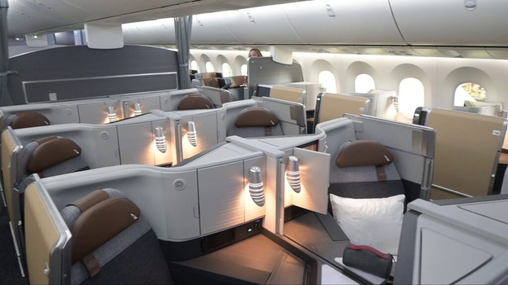 Premium seats include leg rests, wireless charging capabilities and headrest “wings” for additional privacy. All seats, including those in the main cabin, have Bluetooth connectivity so passengers can use their wireless headphones with the airline’s in-flight entertainment system.