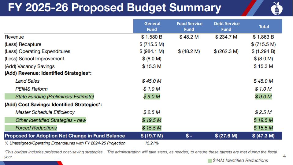 Despite cuts and cost saving measures, as well as about $9 million the district expects to get from the state, the district expects to close the 2025-2026 budget with a more than $40 million deficit.