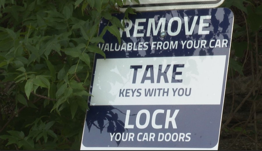 “Remove valuables from your car. Take keys with you. Lock your car doors,” these signs state.
