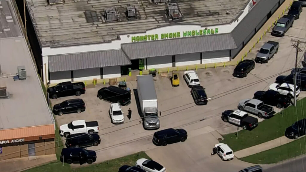 WFAA’s chopper caught images of the police outside of Monster Smoke Wholesale.