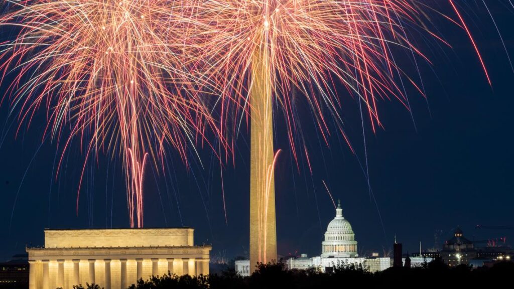 In New York City, organizers of the Macy’s show will fire off 80,000 shells, with some reaching heights of 1,000 feet (304 meters). The National Park Service promises a spectacular show on the National Mall in Washington, D.C.