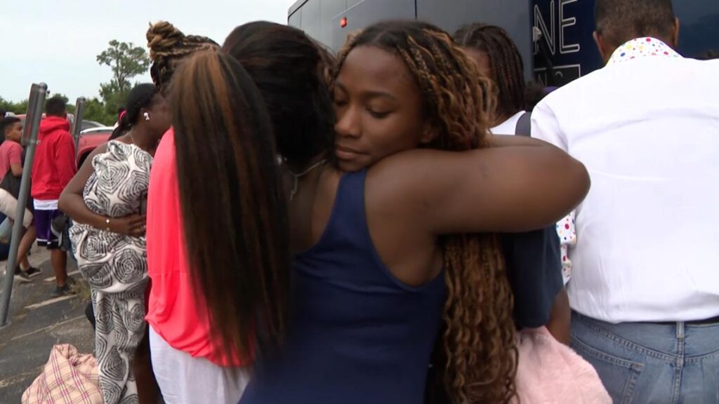 “I missed y’all. I’m so glad y’all made it back safely,” Erica White said tearfully as she hugged her daughter.