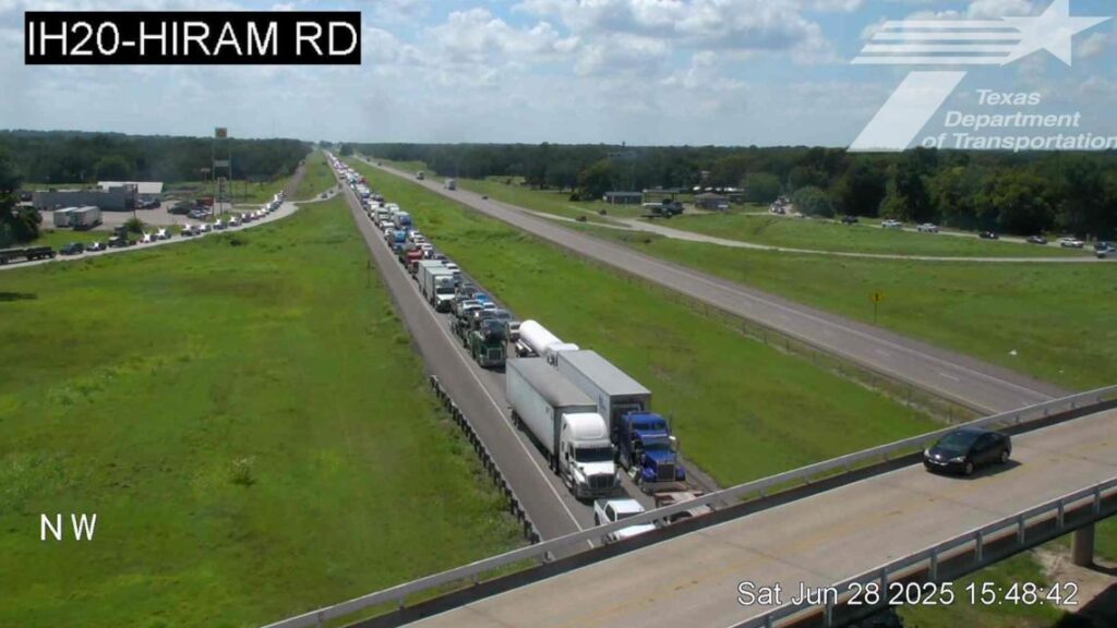 An accident shuts down all lanes of I-20 near Terrell, causing significant traffic backup.