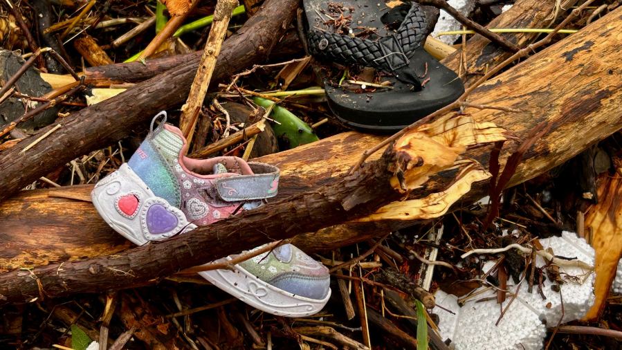 Nearby in Center Point, work crews brought in a crane to clear flood debris on a bridge over the river. Workers removed piles of tree branches and splintered wood. A closer look revealed personal items, in the debris. Our team spotted a T-shirt and a girl’s shoe among the piles of wood. A home, forced from its foundation in the flood, was smashed along the supports of the bridge.
