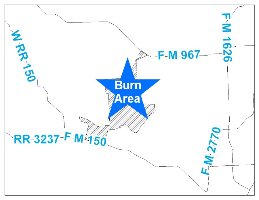 The city department said smoke may be visible “northeast of RR 3237, north of FM 150, south of FM 967 and west of FM 1626 and FM 2770” between 10 a.m. until around 8:21 p.m. Smoke may also be visible from further away.