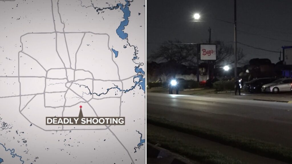 HOUSTON — Numerous evidence markers on the ground illustrated the violence that erupted around 11:45 Sunday night outside Bug’s Bar on Dixie Drive when those in line for a party were suddenly forced to run for their lives.