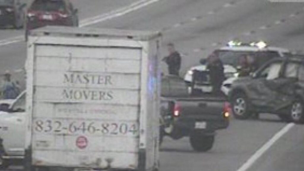 HARRIS COUNTY, Texas — A woman with a gun caused a major backup on the North Freeway on Thursday afternoon after getting into a standoff with authorities after a crash, according to the Harris County Precinct 4 Constable’s Office.