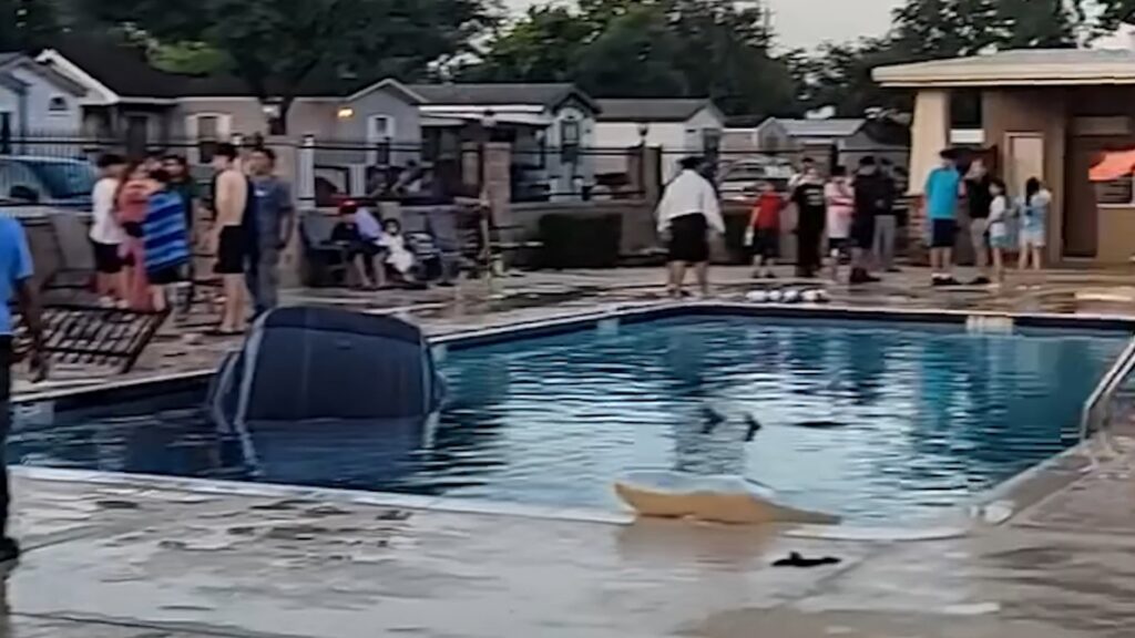 SUV crashes into Houston pool; one detained in investigation