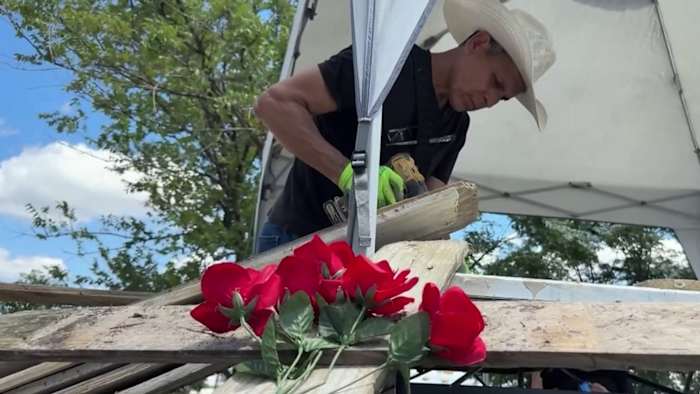 Though Marquez originally started working on the crosses in the parking lot of a Kerrville VFW post on Tuesday, he told TheTXLoop the post didn’t want the installation there permanently.