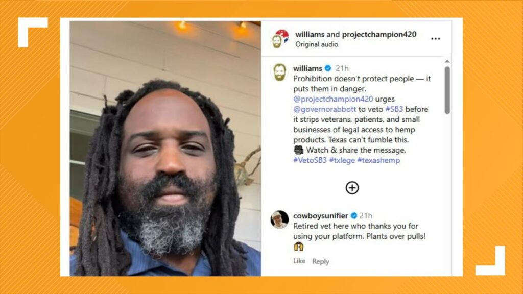 “I’m calling on my friend, Greg Abbott, to please veto this bill and stand with the veterans, farmers and families who know there is a better way forward,” Williams said in the video.